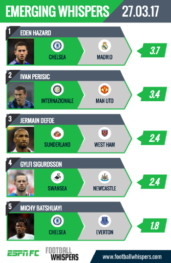 Here are today's top five emerging whispers for the summer. And keep an eye on Transfer Talk for all the latest gossip.